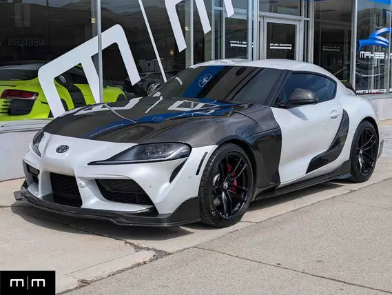 Finished in white with a black interior, this 2022 Toyota GR Supra is the rare A91 Carbon Fiber Edition and has only 9,705 miles. Loaded with top-tier factory features plus tasteful modifications, this Supra is truly one-of-a-kind. The exterior is transformed with a carbon fiber hood (certificate riveted on the underside), carbon fiber fenders, and a full 1-piece carbon fiber front splitter. Aero Catch hood pins add a motorsport touch while ensuring hood security. Additional carbon accents include a carbon fiber door garnish for a sleek, aggressive finish. The cockpit has also been upgraded with a carbon fiber steering wheel that elevates the interior. For enhanced stance and handling, the Supra is equipped with KSP Performance forged 12.7mm wheel spacers (with extended length lug nuts for proper fitment). Riding on four new tires, this Supra is ready to carve up your favorite roads. Factory accessories include a new trunk mat, two brand new keys, complete books and owner’s manuals in their leather casing, ensuring you have everything you need to enjoy and maintain this rare A91 Edition. Whether you’re looking for a thrilling daily driver or a weekend toy, this Supra delivers a perfect blend of performance and show-stopping style. Clean title, well cared for, and turn-key ready.